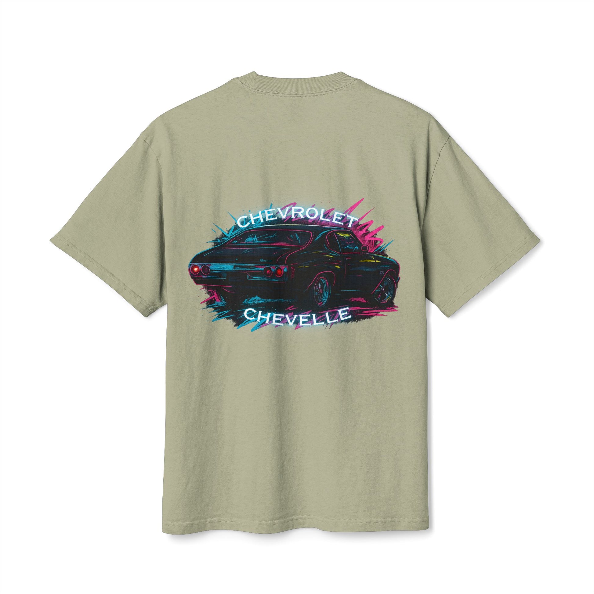 The Road-Worn Chevelle Car Tee: Heavyweight Boxy Neon Muscle Car Graphic Tee